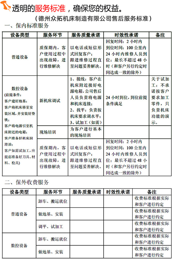 01 眾拓機床,質(zhì)保一年。質(zhì)保期內(nèi)免費維修、零配件免費更換;